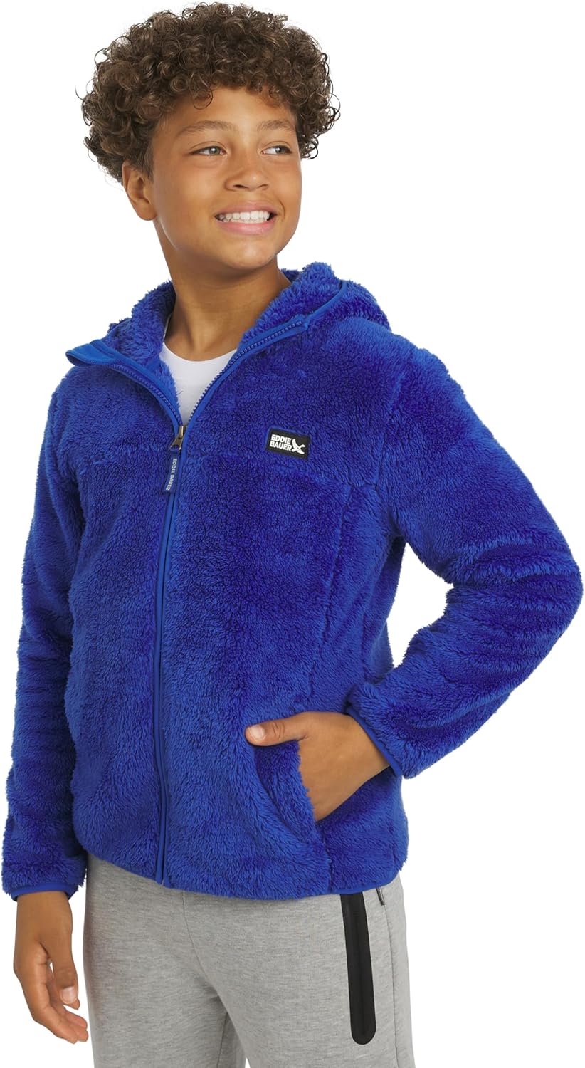 Eddie Bauer Boys' Quest Plush High Pile Faux Sherpa Hooded Jacket