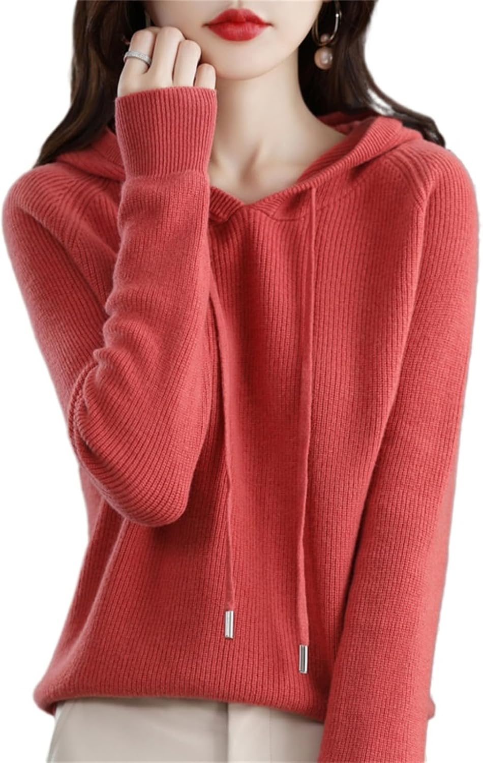 Womens Cashmere with Pullovers,Winter Casual Knitting Hoodie Fashion Sweater,Fall Drawstring Thick Sweater
