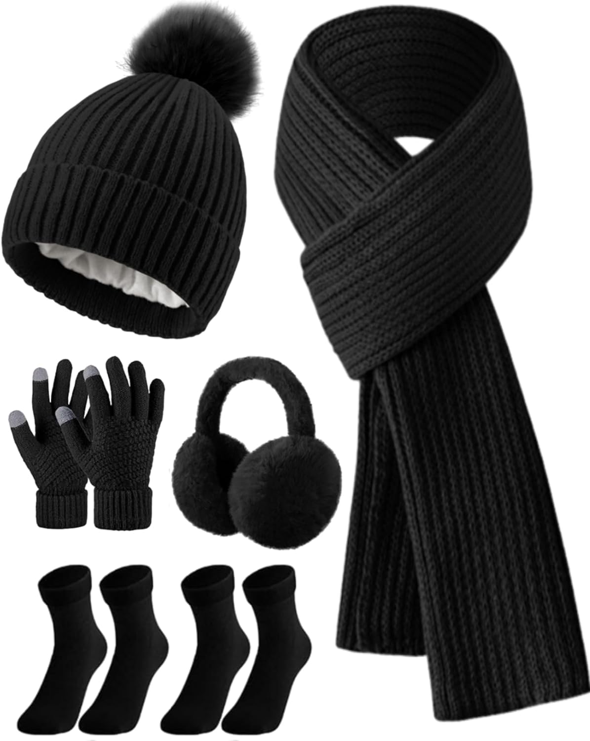 Geyoga 6 Pcs Winter Warm Set for Women Warm Beanies Hats Touchscreen Gloves Long Scarf Ear Muffs Socks Winter Gifts for Women