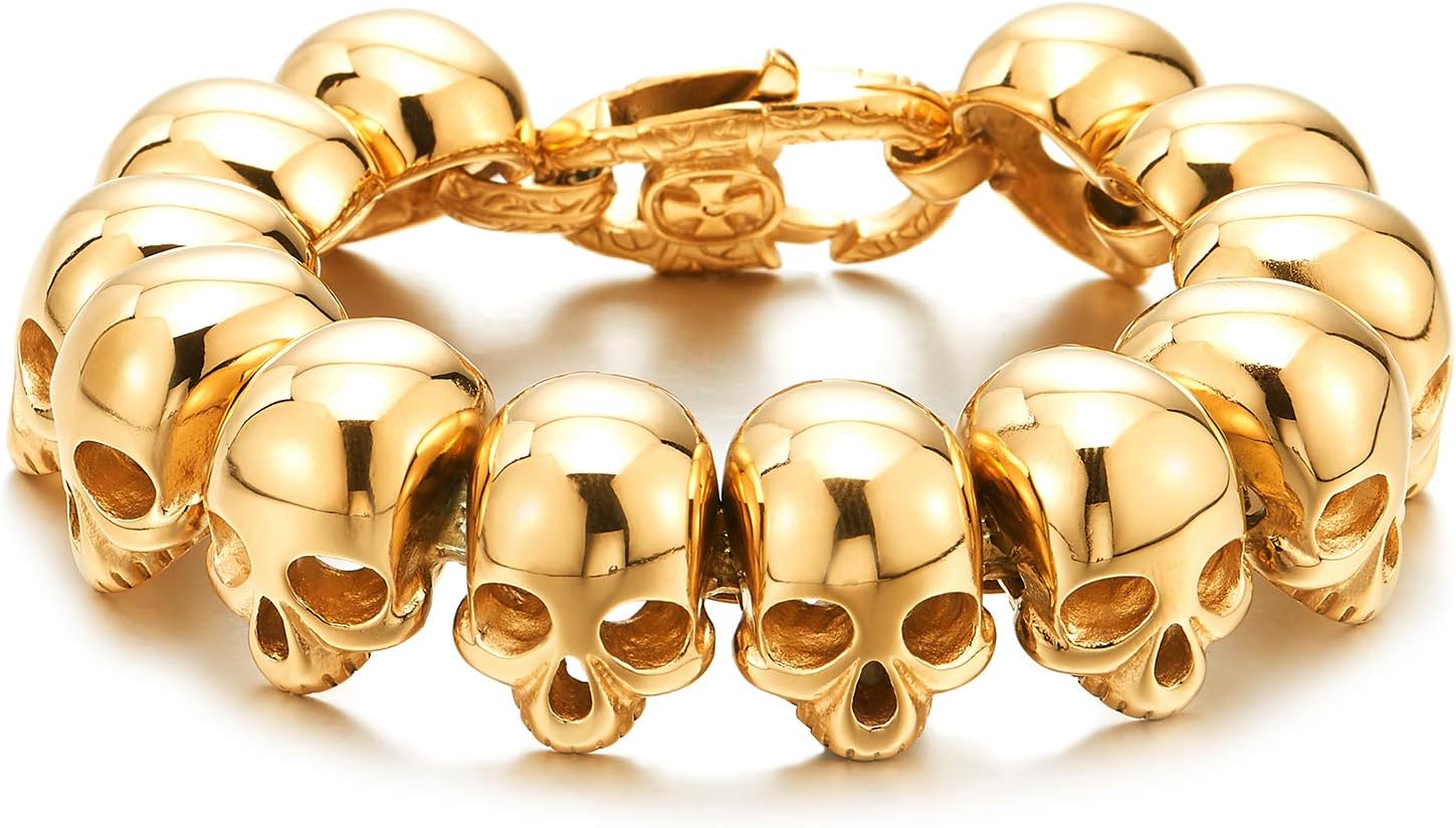COOLSTEELANDBEYOND Mens Stainless Steel Large Skull Link Bracelet Biker Gothic Style High Polished