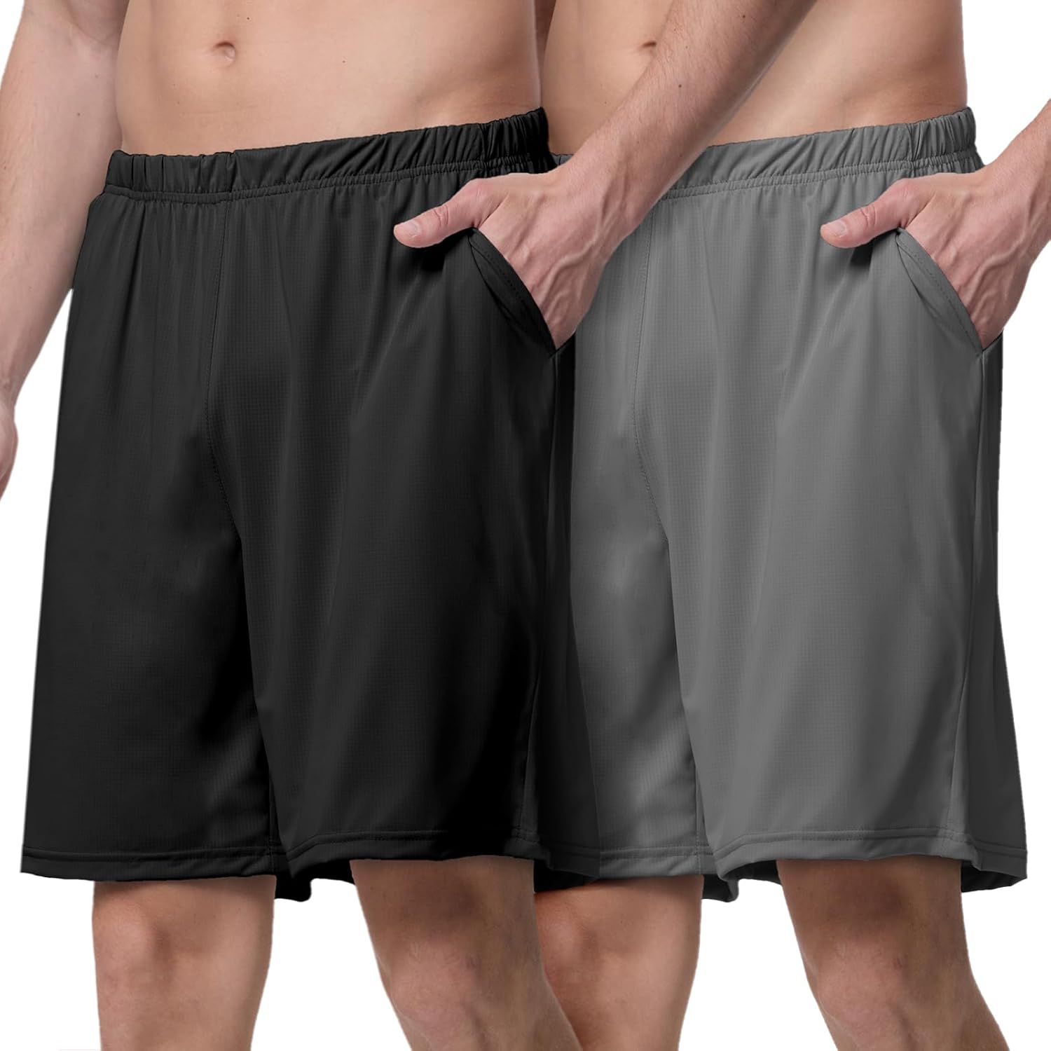 Mens Sleep Shorts Pajama 2 Pack Soft PJ Bottoms,Breathable Mesh Lounge Casual Shorts PJ for Men with Pockets Drawstring