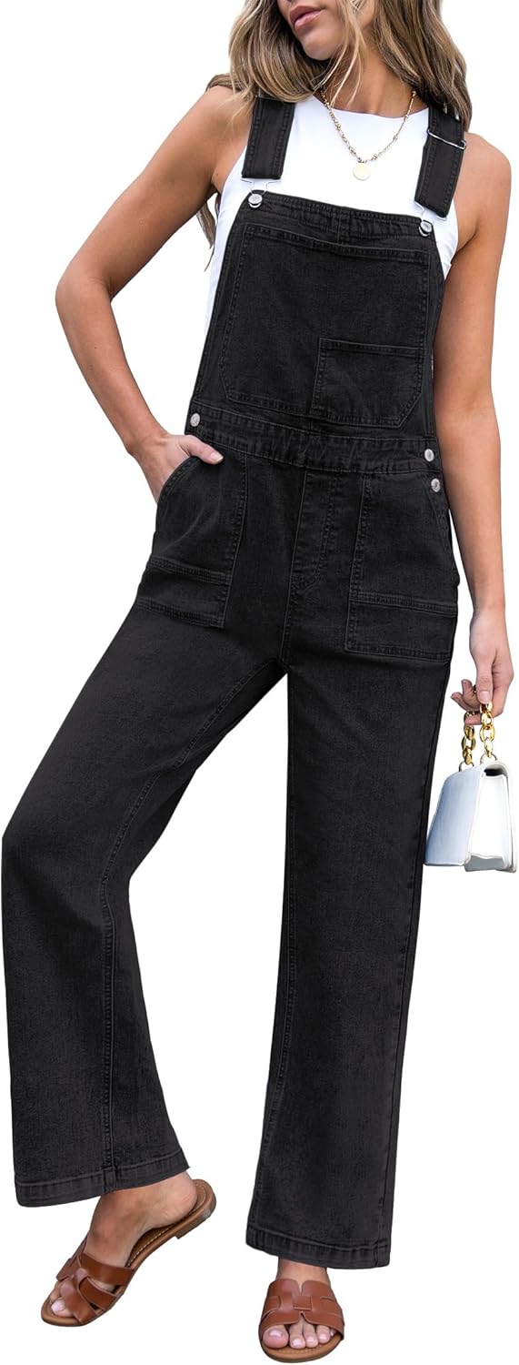 luvamia Jean Overalls for Women Straight Wide Leg Baggy Stretchy Denim Bib Adjustable Strap Casual Jumpsuit Loose Fit