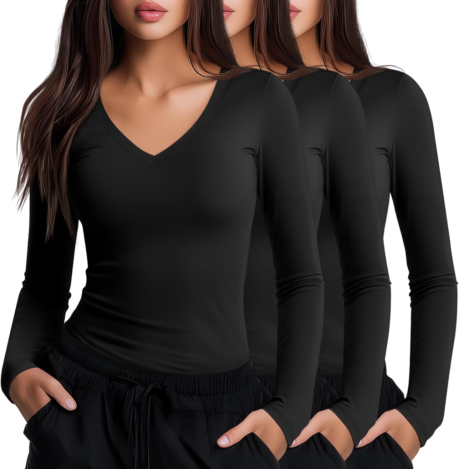 Neer 3 Pack Women Long Sleeve Underscrubs Shirt V Neck Slim Fitted Scrub Undershirts Comfort Nurse Fall Layering Tees Tops