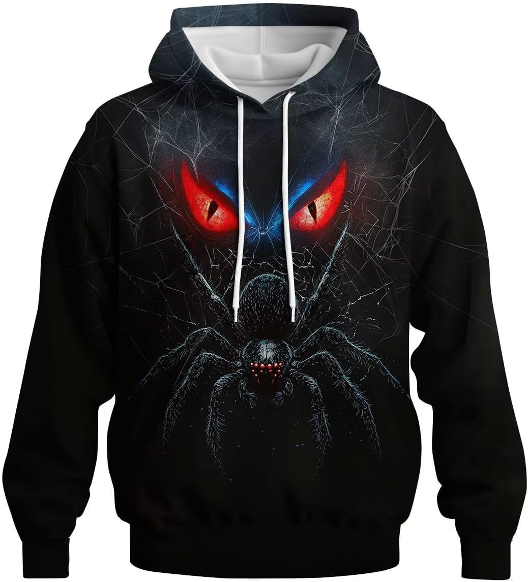 Novelty Long Sleeve Hoodie Funny Fashion Spider Print Sweatshirts