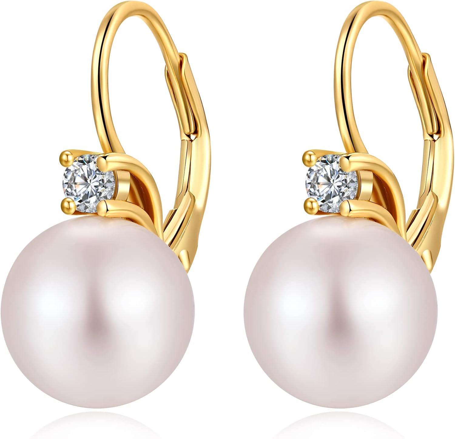 Jiamiaoi Pearl Dangle Earrings 925 Sterling Silver Pearl Earrings for Women 10mm White/Black Pearls