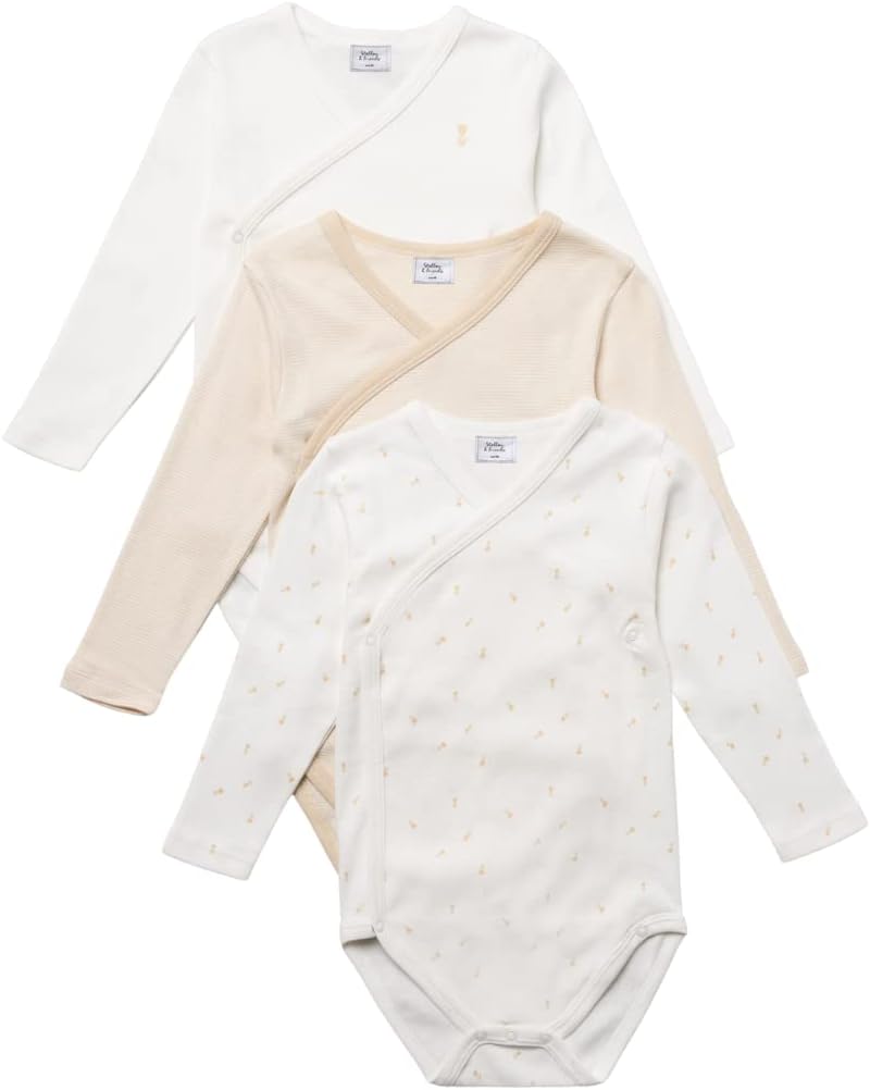 Stellou & friends Newborn, Baby and Toddler Unisex Long-Sleeve Crossbody Kimono Bodysuit for Boys & Girls, Pack of 3