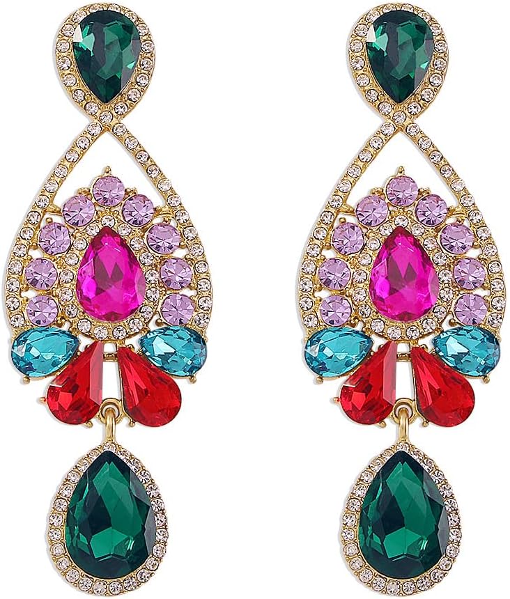 Wekicici Multicolor Rhinestone Earrings Bridal Chandelier Drop Earrings Cluster Rhinestone Dangle Earrings for Wedding Party Fashion Accessories Gift for Women (Multicolor)