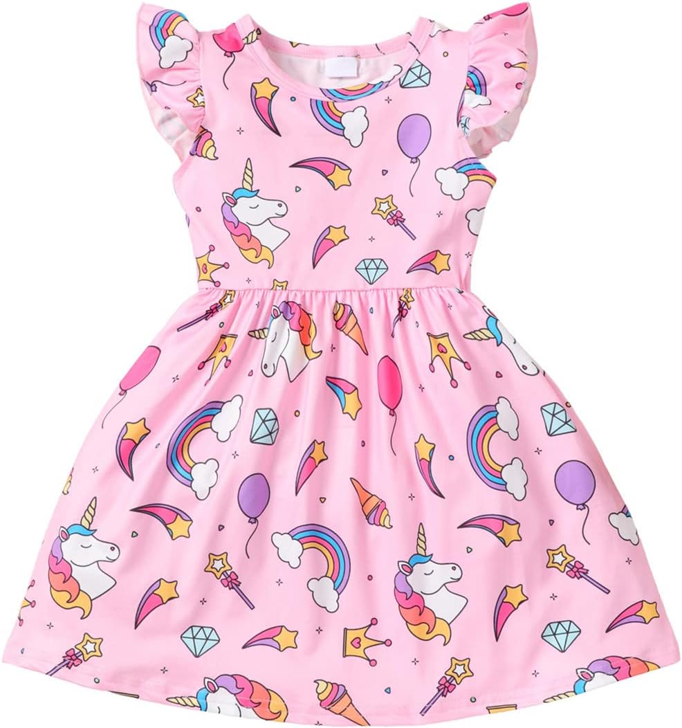 Baby Girls Dress Unicorn Casual Flutter Sleeve Swing Sundress Birthday Party Summer Playwear Dresses 1-8 Years Old