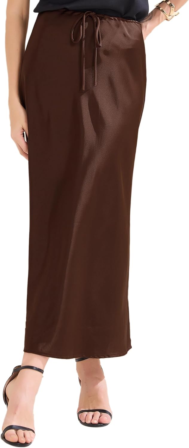 Allegra K Women's Satin Maxi Summer Skirt High Waist Drawstring Flared Cocktail Wedding 2025 A-Line Long Skirts