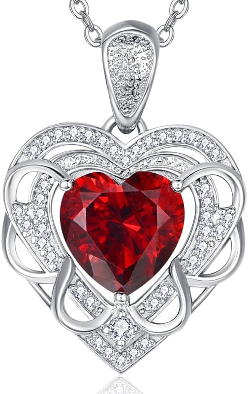 HeartMelody Necklace Birthday Gifts for Women,Garnet Birthstone Love Heart Pendant Necklace Anniversary Present for Wife, 18K White Gold Plated Jewelry Gifts for Mom Her