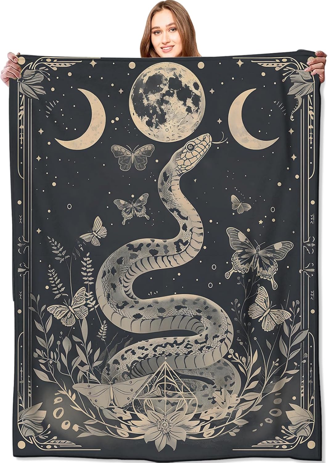 Mystic Snake Blanket Celestial Moon Throw Blankets,Birthday Gifts for Kids Adult,Lightweight Soft Fleece,with Astrology Butterfly,Sofa Couch Bed Room Horror Spiritual Decor 50x60in