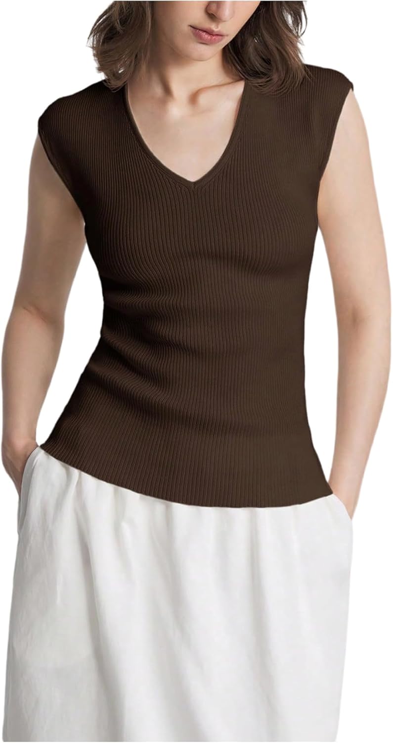 WDIRARA Women's V Neck Sweater Vest Cap Sleeve Knit Top Pullover Knitwear