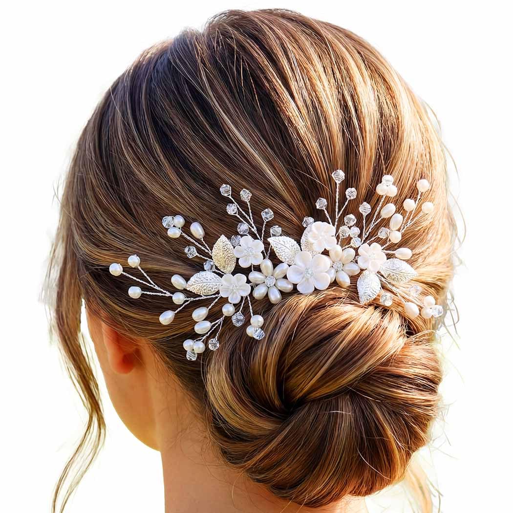 - Pearl flower hair comb adorned with silver-plated alloy frame, durable and anti-tarnish, perfect for bridal updos, proms, or formal events.