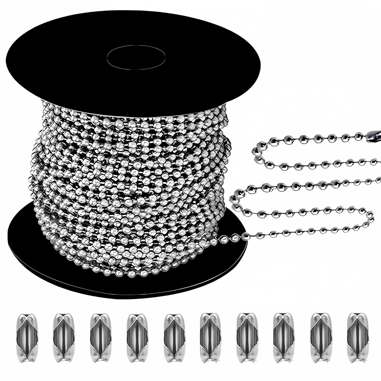 50ft Ball Bead Chain, #10 Stainless Steel Ball Chain, Roller Shade Chain&Vertical Window Blinds, Dog Tag Chain, Bead Chains for Jewelry Making/Crafts & DIY Projects(4.5mm with 10pcs Connectors)