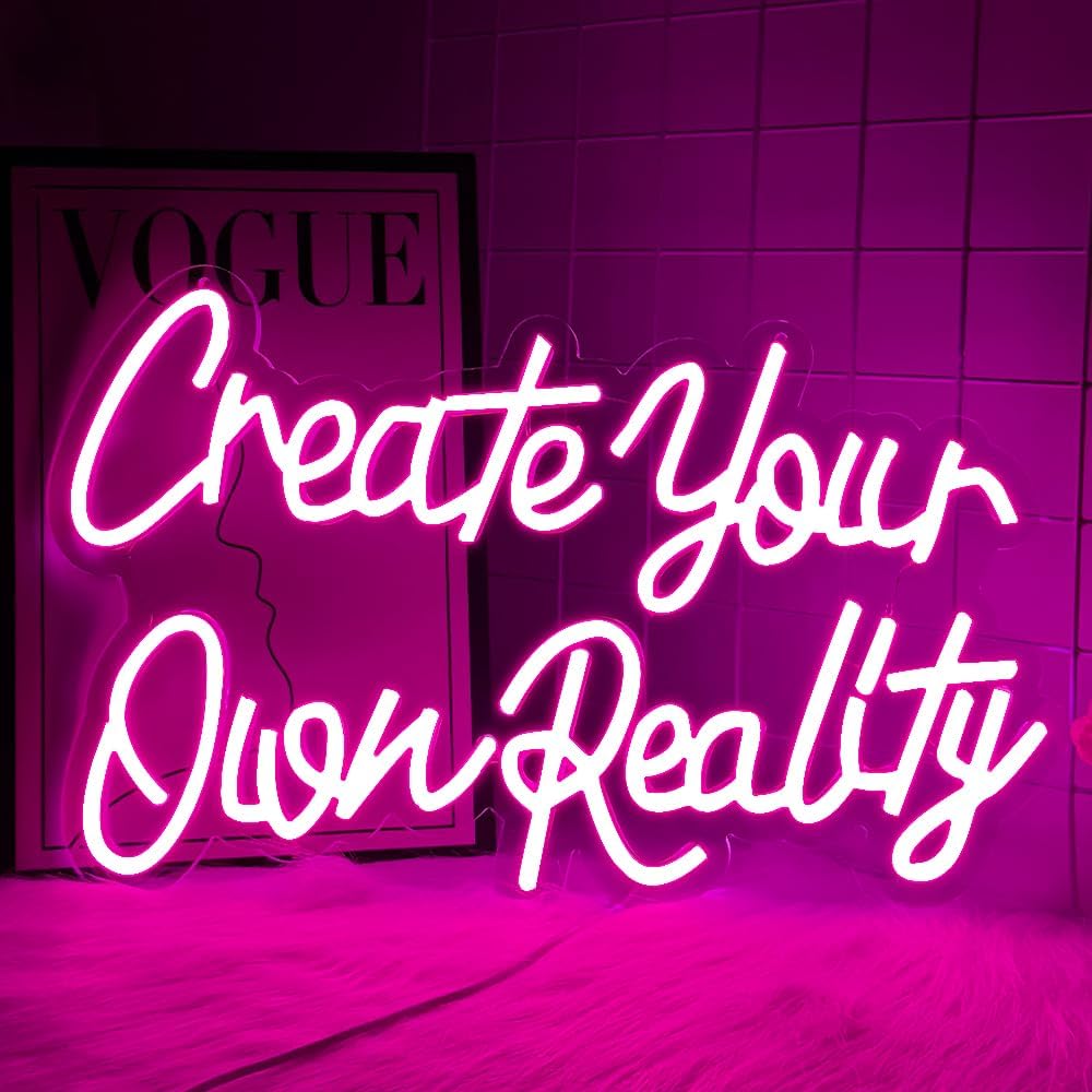 Create Your Own Reality Neon Sign Gorgeous Pink Led Sign for Wall Decor, Create Your Neon Sign for Girls Bedroom,Dimmable Switch USB for Wedding Birthday Party Gift