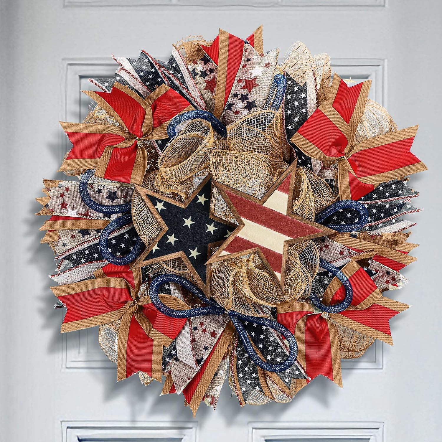 - Star 4th of July Wreath: you'll get a hanging 250th anniversary rustic patriotic wreath with stars centerpiece, red blue and white colors match the stars and are well worked in concert with the traditional American elements, bringing you a strong feeling of 4th of July