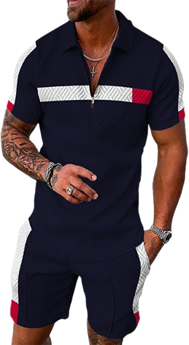 Mens Short Sets 2 Piece Outfits Polo Shirt Fashion Summer Tracksuits Casual Set Short Sleeve and Shorts Set for Men