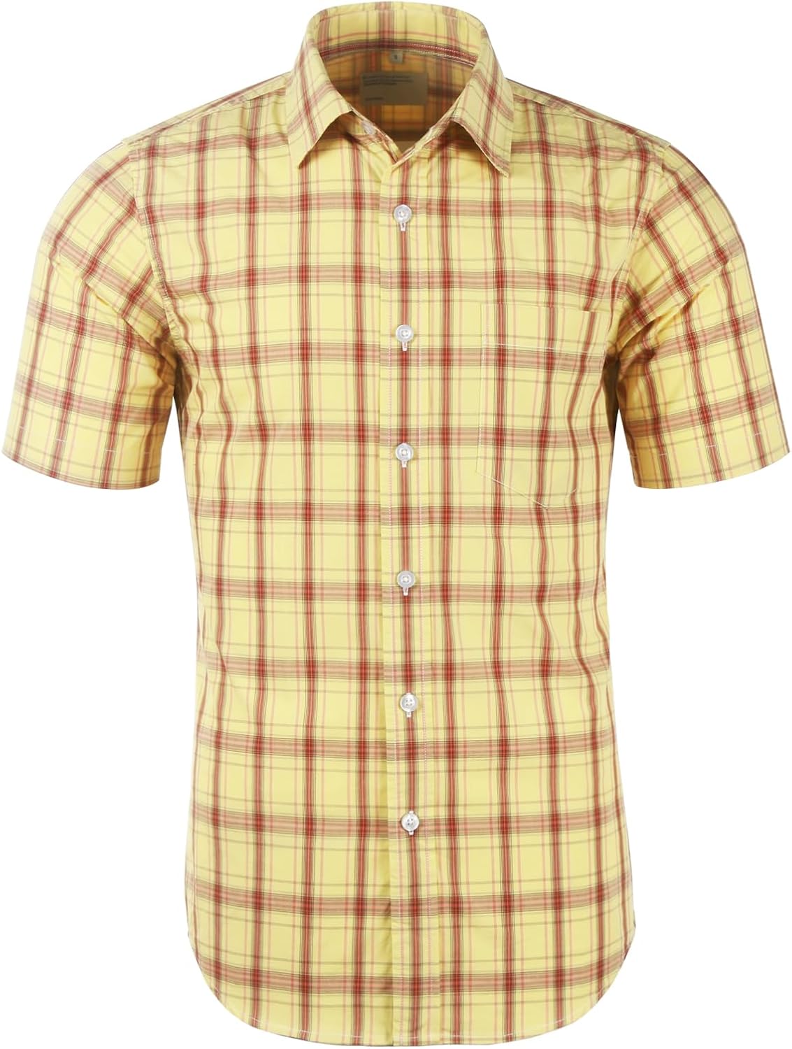 Mens Casual Regular Fit Short Sleeve Plaid Shirts