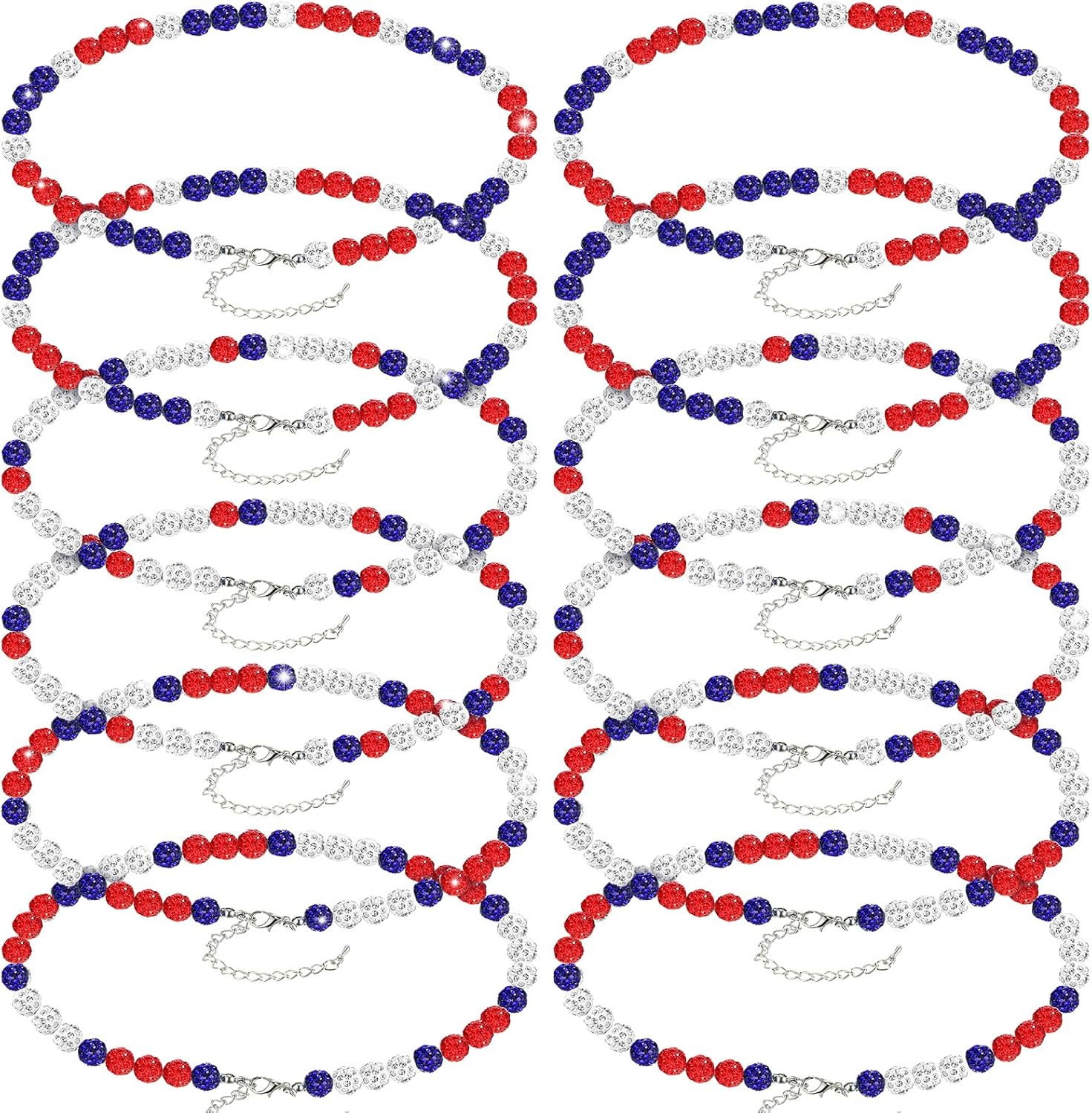 Landical 12 Pcs Bling Baseball Necklace Ice Beaded Baseball Necklace Cool Gifts Bulk for Team Players Lovers Fans