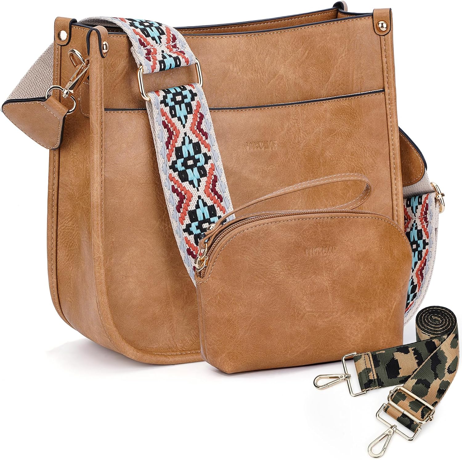 HKCLUF Crossbody Bag Purse for Women 2PCS/Set Leather Hobo Handbag Wallet Set With 2Adjustable Guitar Strap Shoulder Bag | Purse, 2PCS/Set, Leather, Wallet Set, Purse