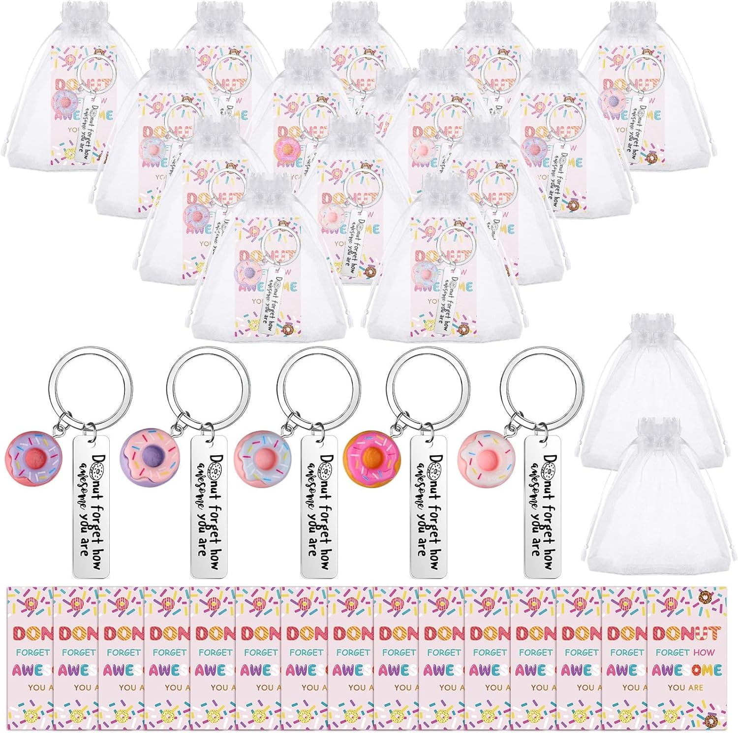 30 Set Donut Keychains Positive Gifts Emotional Support Cards Thank You Staff Gift Inspirational Keychain Employee Appreciation Gifts for Coworkers Volunteer Nurse Teacher Team Donut Party Favors