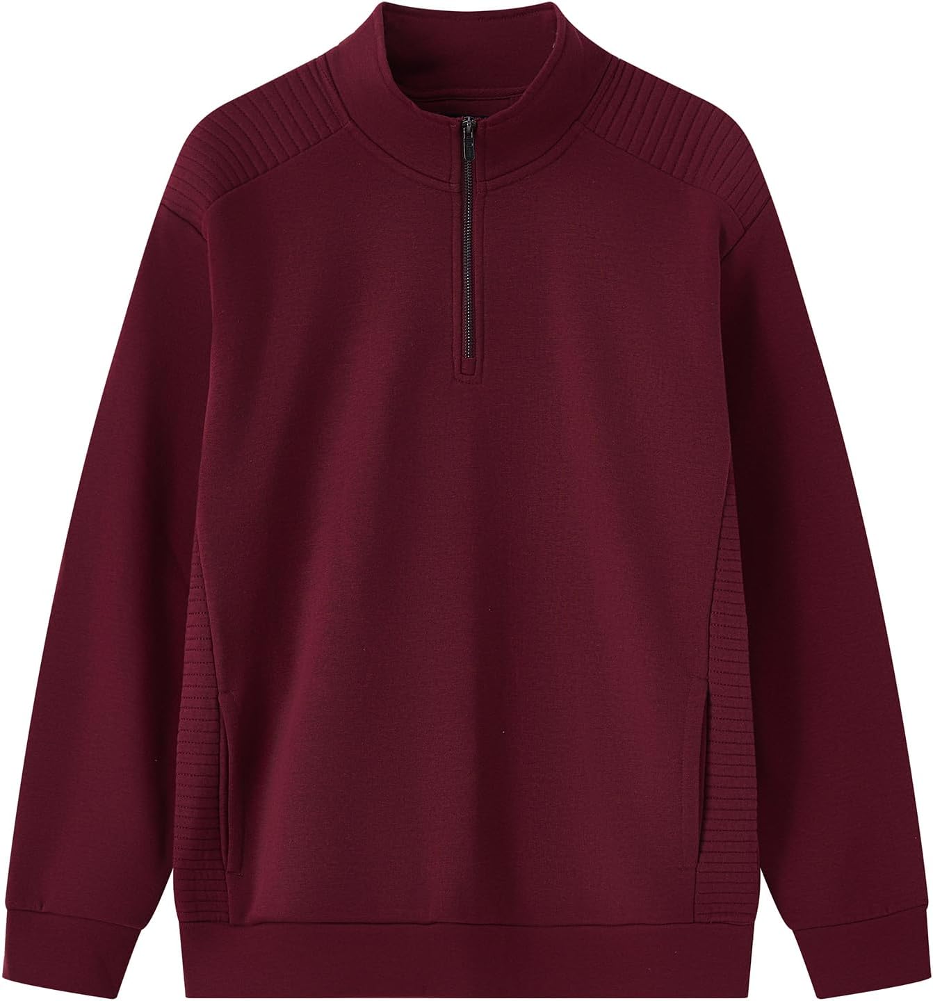 Mens Quarter Zip Sweatshirt Fleece Lined Plain Pullover Sweatshirts with Pockets S-3XL
