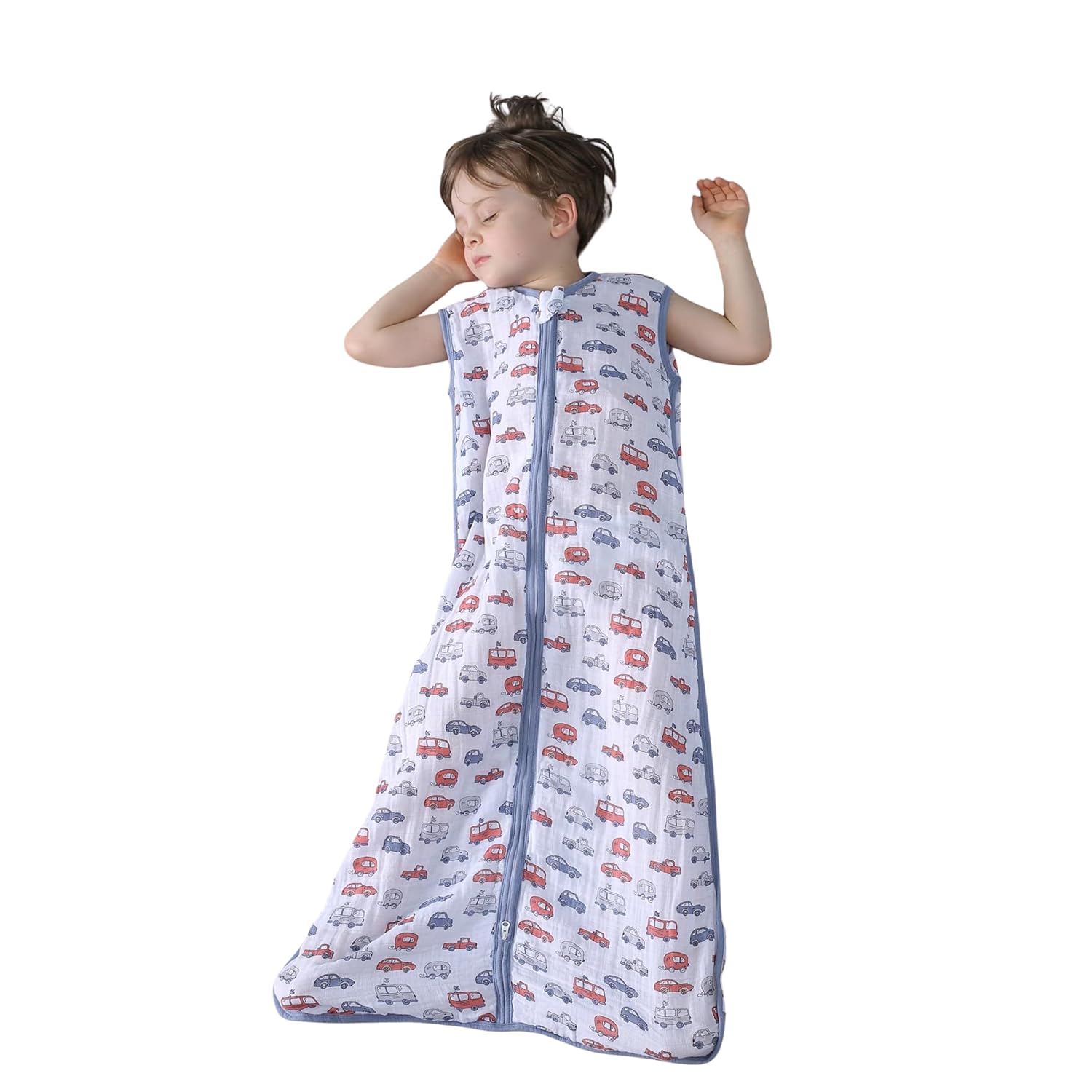 Baby Sleep Sack 2-4 T Baby Wearable Blanket 100% Organic Cotton 0.5 TOG Toddler Sleep Sacks 2‑Way YKK Zipper Soft 4 Layers Muslin 2T 3T 4T Car Truck