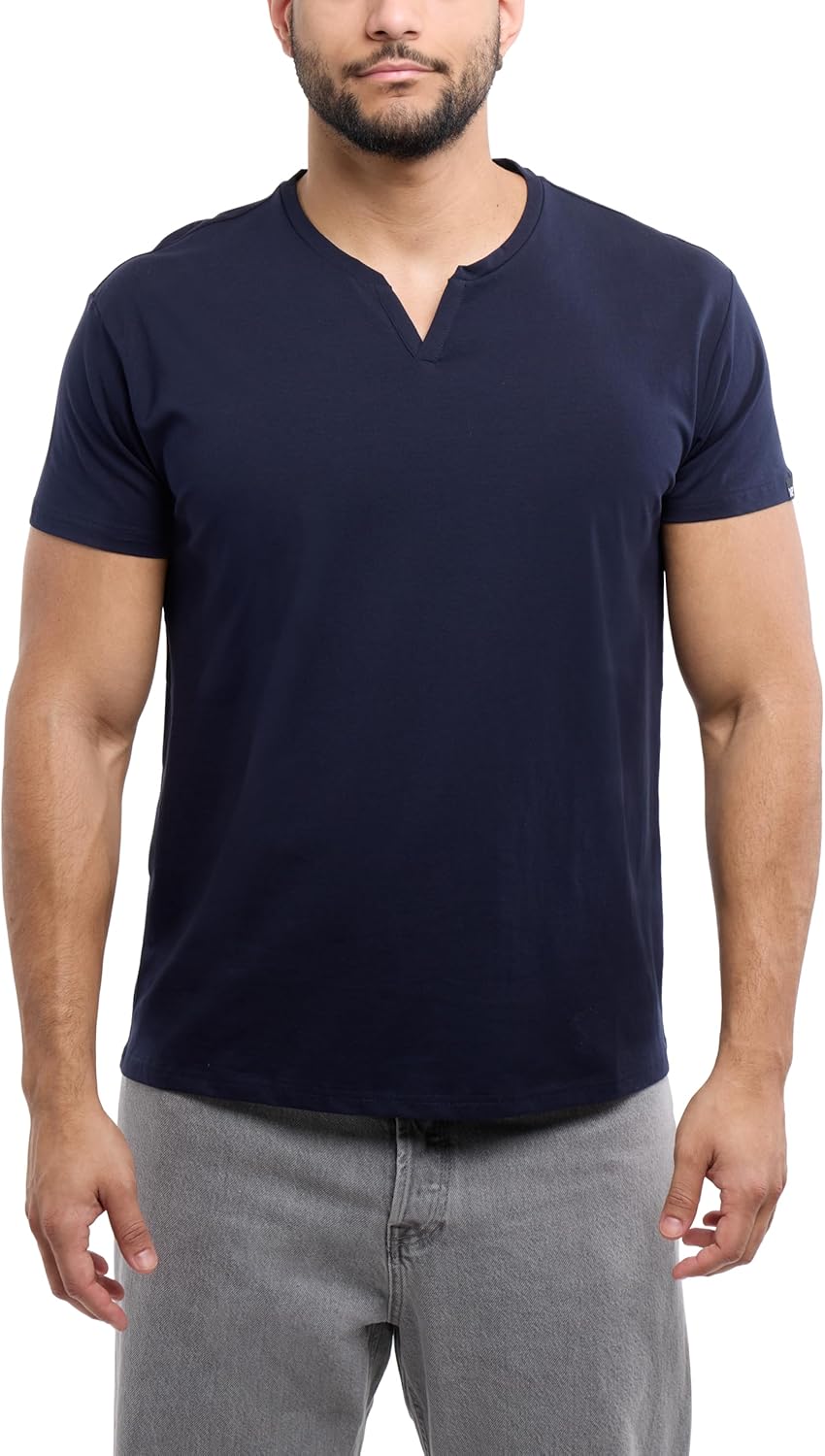 X RAY Men's Notch T-Shirt, Soft Cotton Short Sleeve Slim Fit Basic Split V Neck T Shirts for Men