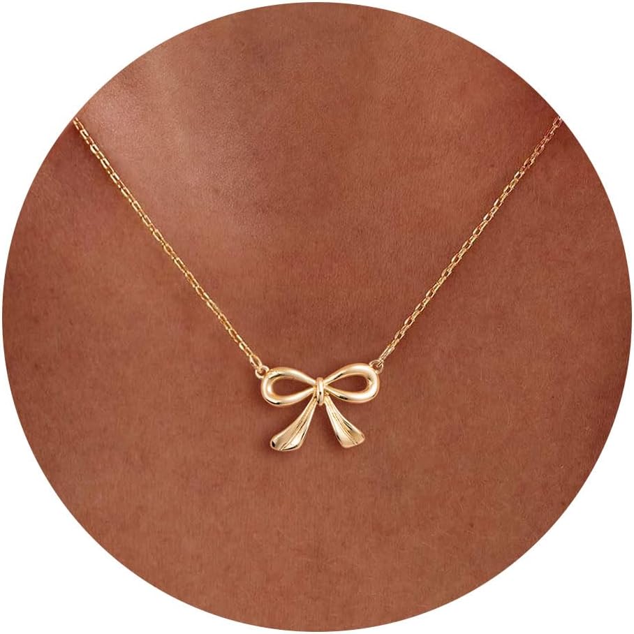 HANLI Gold Necklace for Women - Bow Necklace 14K Gold Plated Dainty Cubic Zirconia Bow Necklace Small Bow Necklace Trendy Necklaces for Women Minimalist Jewelry