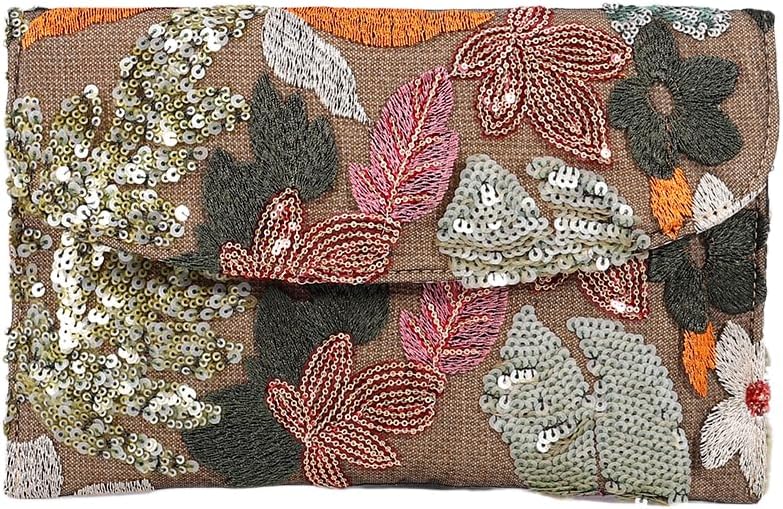 Floral Clutch Purses for Women Summer Embroidery Purses Sequin Unique Beaded Evening Bag Wedding Beach Colorful