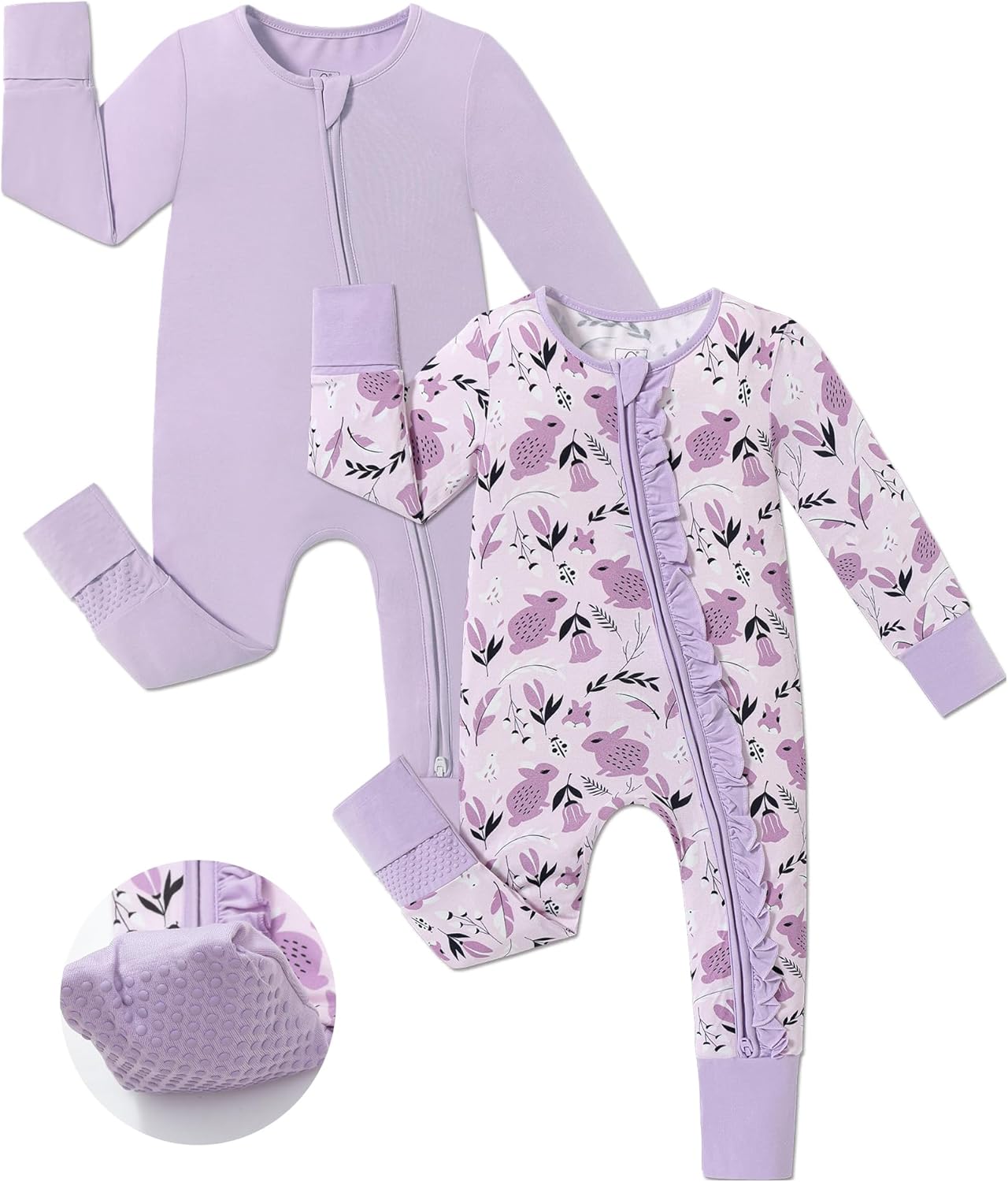 JunNeng Baby Girl Viscose from Bamboo Sleeper with Mitten Cuffs, 2 Way Zipper Romper, Sleep N' Play Pajamas 0-18 Months