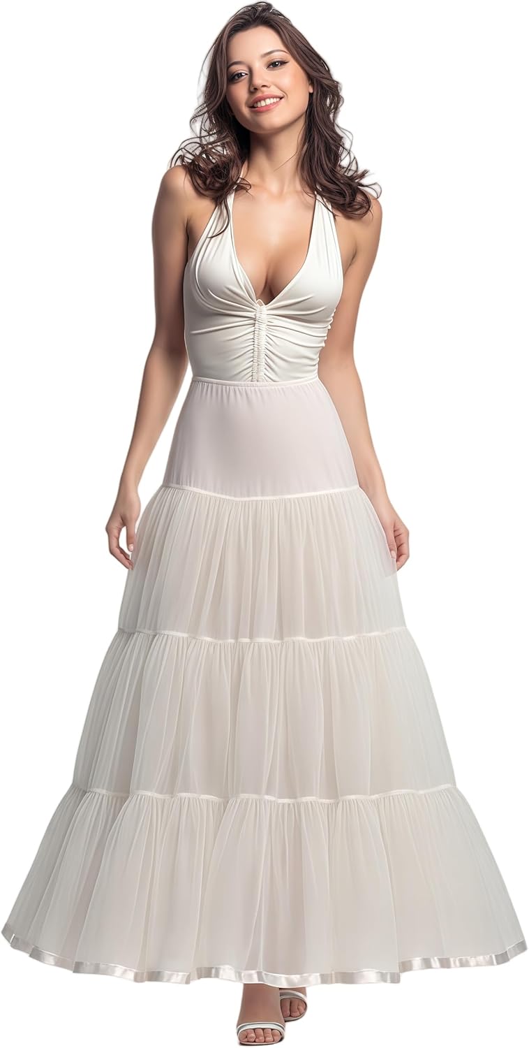 CHERRY LOVE Long Petticoat Ankle Length Underskirt for Wedding Dress Full Length Crinoline Slip
