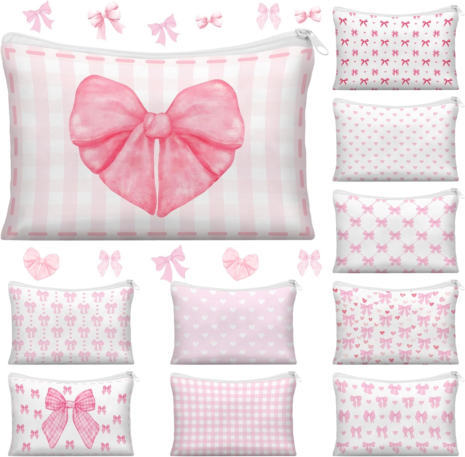 Reginary 10 Pcs Valentines Coquette Bow Cosmetic Bag for Valentine's Day Wedding Nurses Day Aesthetic Makeup Bag Lovely Heart Preppy Pouch Zipper Coquette Party for Galentine Gift(Pink,Lovely Heart)