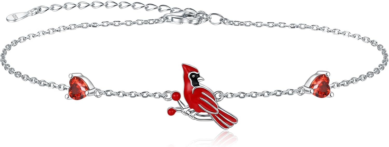 Sterling Silver Red Cardinal Jewelry Bracelet Ring Necklace Women Adjustable Cardinals Memorial Jewelry Sympathy Gift for Family