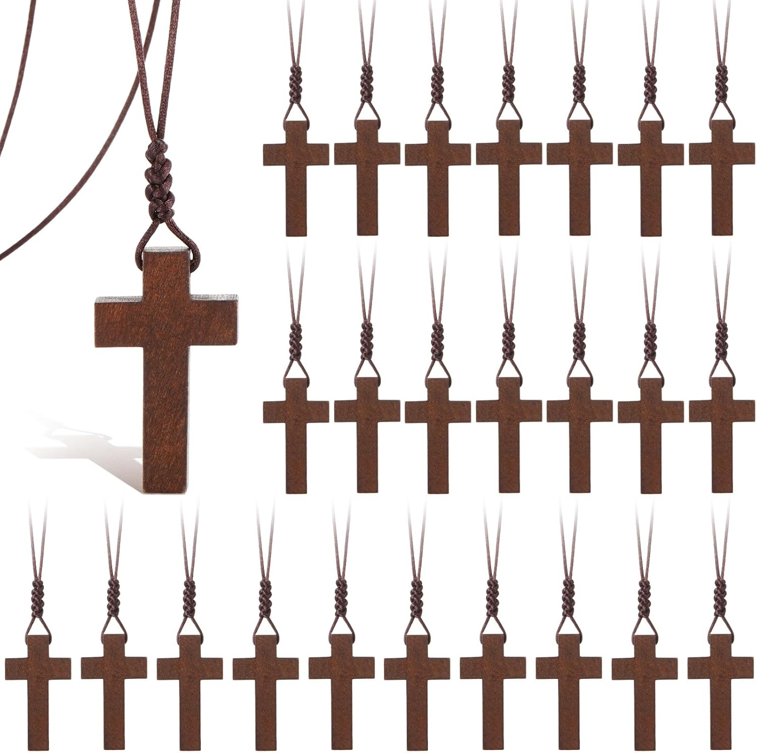 Wood Cross Necklace Bulk Chiristian Gift for Men Women Bible Verse Party Favor Wood Cross Pendant Crucifix on Cord