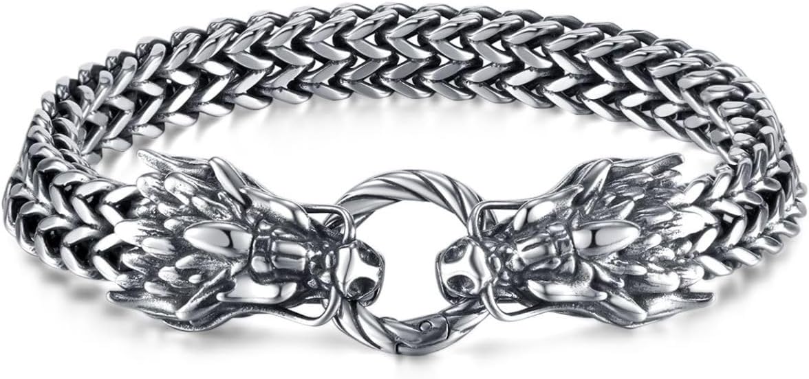 jonline24h Stainless Steel Double Dragon Punk Rock Link Bangle Bracelet for Men & Women - Gothic Biker Chain Jewelry