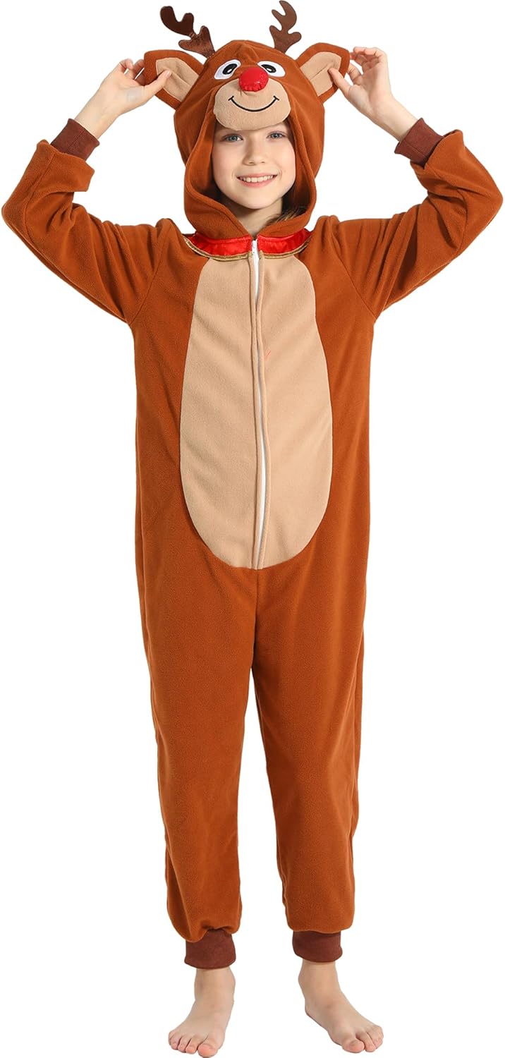 Wizland Animal Costume for Kids, Leopard Cow Monkey Reindeer Tiger Dalmatian Snowman Santa for Christmas Halloween