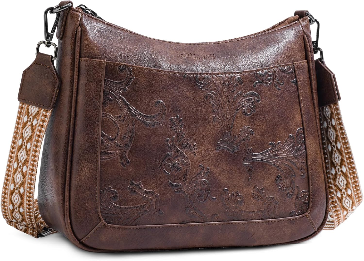 VIMUTI Crossbody Bags for Women,Vegan Leather Crossbody Purse with Adjustable Strap Embossed Flower Women's Shoulder Handbags | Medium, Trendy, Multi Pocket, Hobo Purse, Wide Guitar Strap, Lightweight