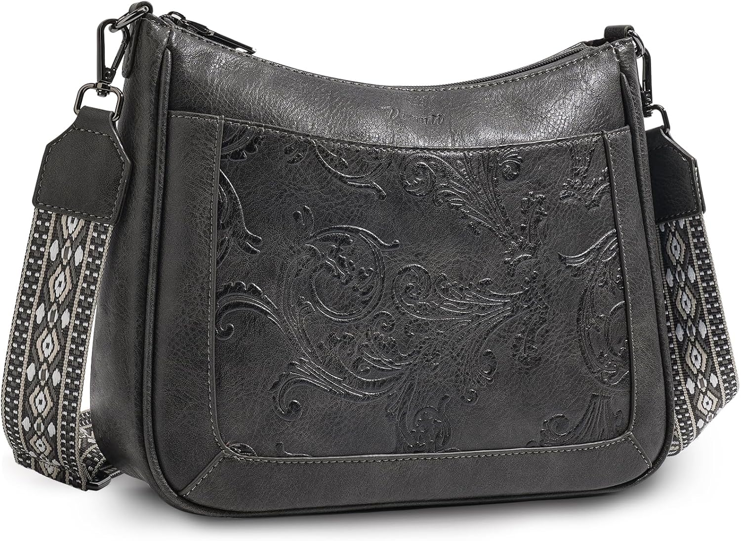 Crossbody Bags for Women,Vegan Leather Crossbody Purse with Adjustable Strap Embossed Flower Women's Shoulder Handbags | Medium, Trendy, Multi Pocket, Hobo Purse, Wide Guitar Strap, Lightweight
