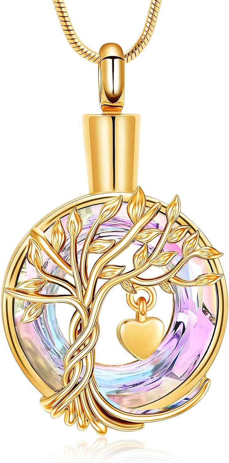 Hearbeingt Teardrop Urn Necklaces for Ashes Tree of Life Memorial Ashes Lockets, Cremation Jewelry Keepsake Pendant for Ashes for Women for Men