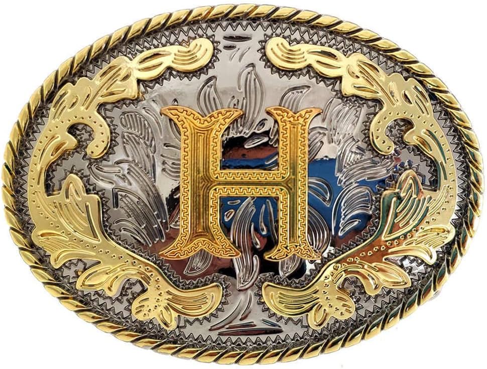 WMG Western Belt Buckle Initial Letters ABCDMRJ to Z Cowboy Belt Buckle, Rodeo Buckles for Men & Women