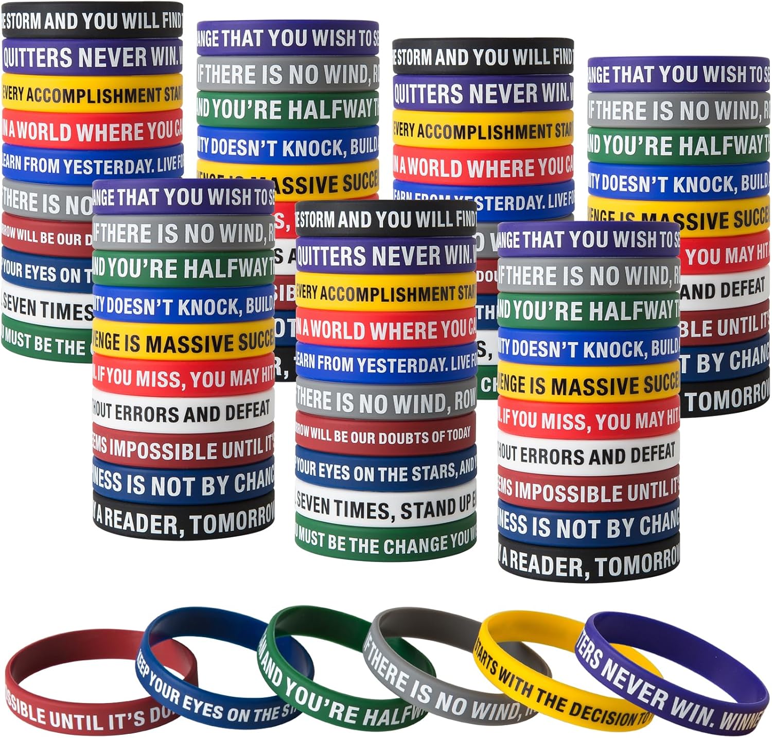 - INSPIRATIONAL DESIGN: Collection of motivational silicone wristbands featuring uplifting quotes and messages in various stylish colors