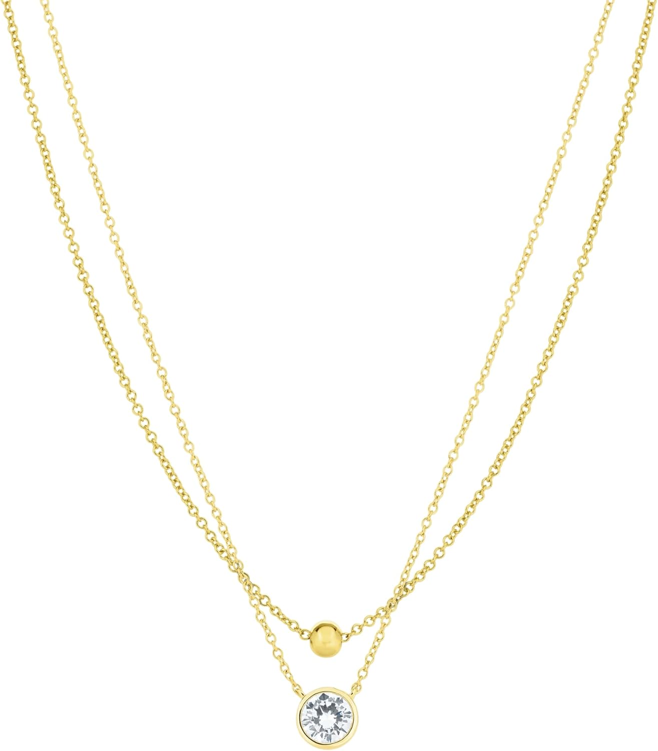 Amazon Essentials 14K Gold Plated Necklace Set of 2 - Ball Pendant, Solitaire Pendant - Dainty Hypoallergenic Necklaces for Women