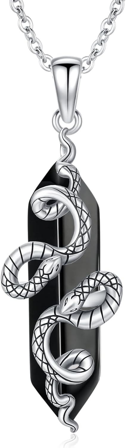 Crystal Snake Necklace for Men and Women, 925 Sterling Silver, Snake Pendant with Healing Crystal, Animal Jewelry Gift for Wife Husband