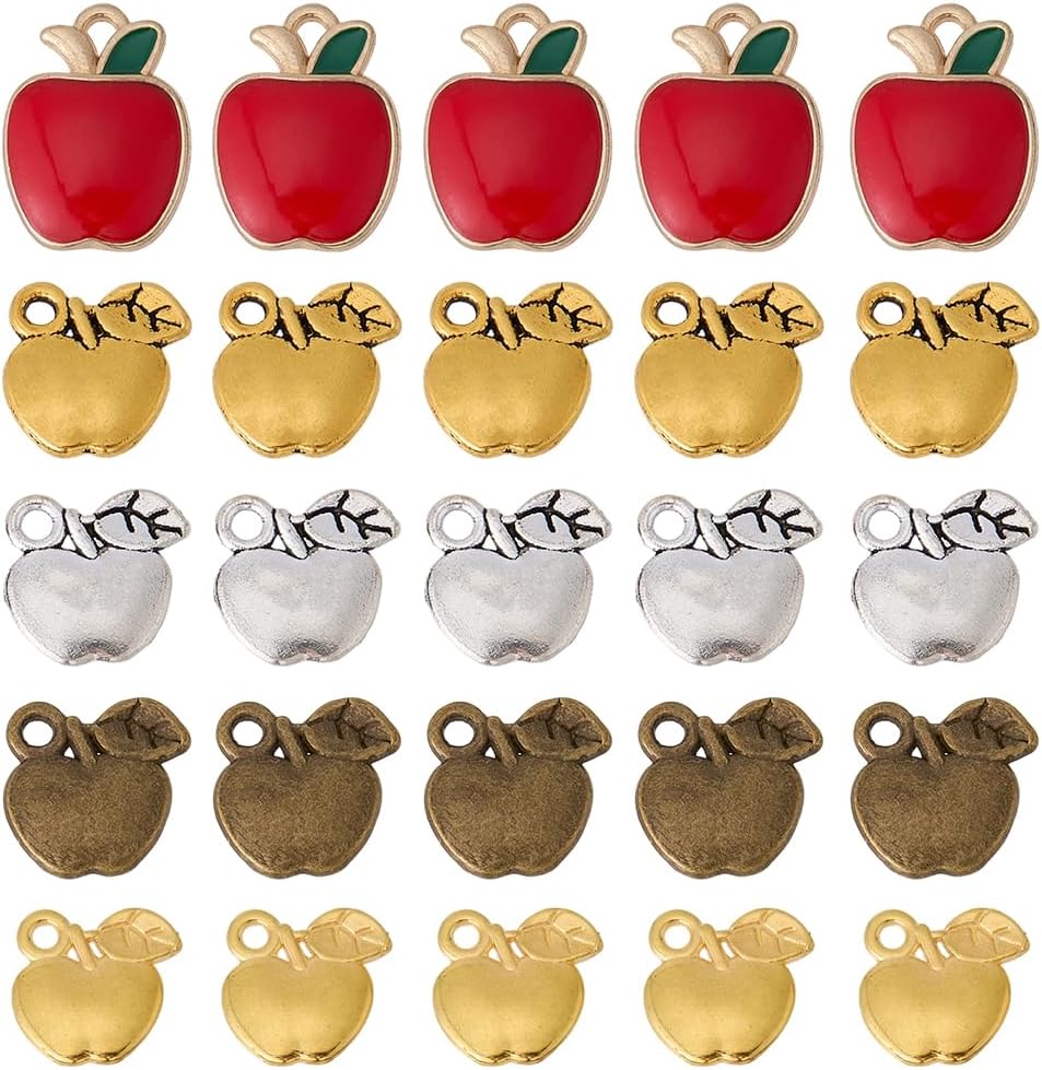 - 5 Styles Apples Charms: Apples charms are available in 5 styles, red, gold, silver, antique bronze, antique gold, offers a diverse range of styles and finishes to suit different tastes and crafting needs