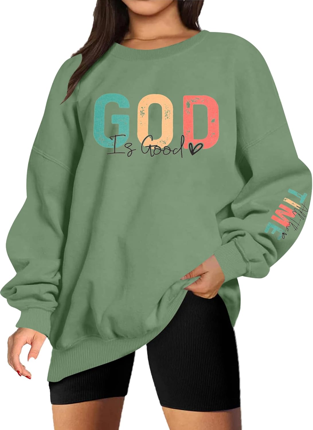 God is Good Sweatshirt Christian Shirts for Women Oversized Jesus Religious Pullover Bible Verse Inspirational Tops