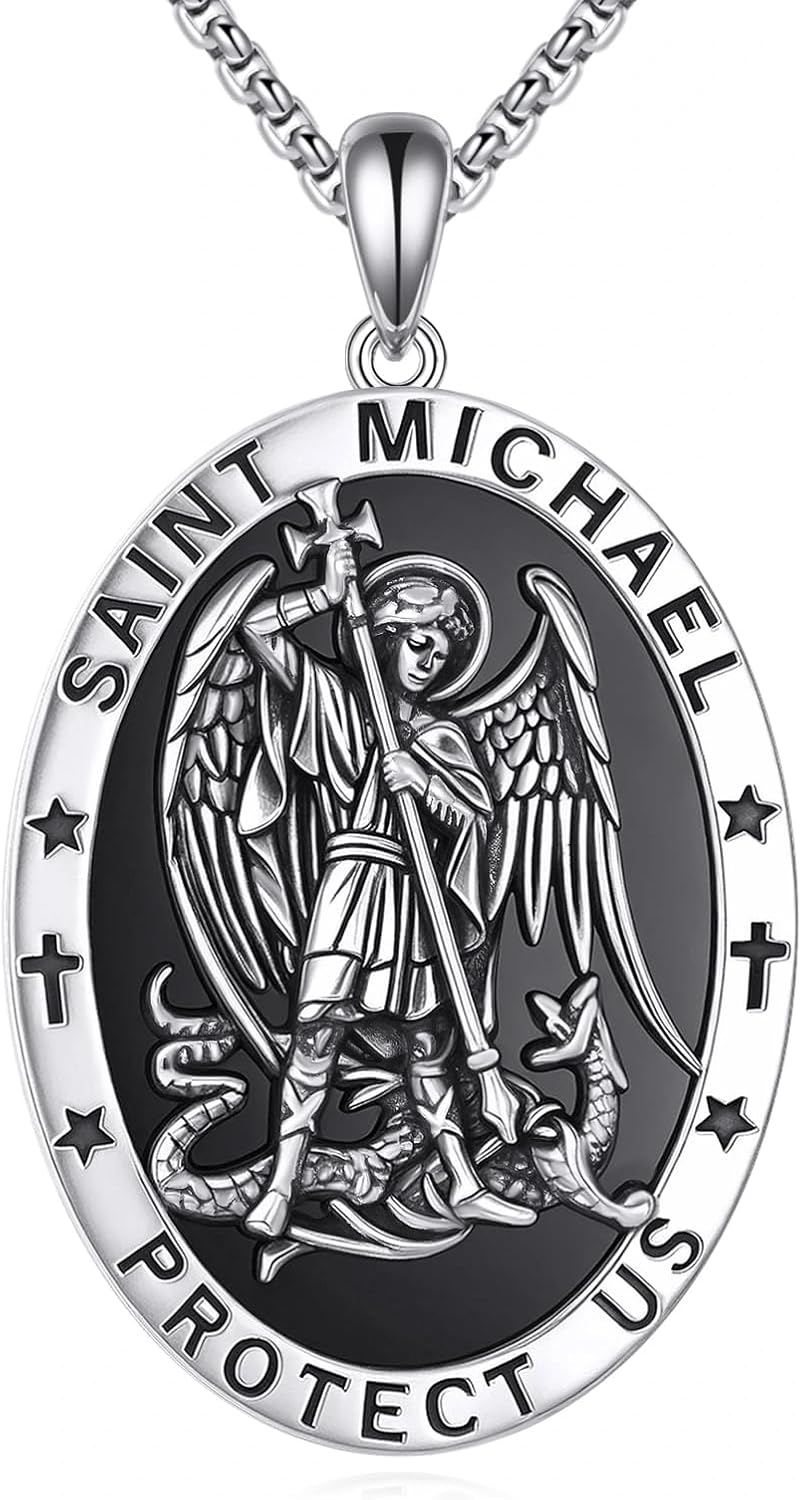 925 Sterling Silver St Christopher/St Michael Necklace Medal Pendant Protection Religious Necklaces Magic Amulet Jewelry Gift for Men Women with 2.5mm 22"+2" Rolo Chain