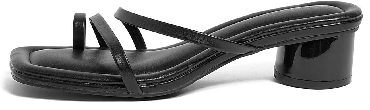 Women'S Open Toe Chunky Heel Strappy Sandals Fashion Square Toe Slip On Slides Mules Sandals For Summer For Outdoor Wear
