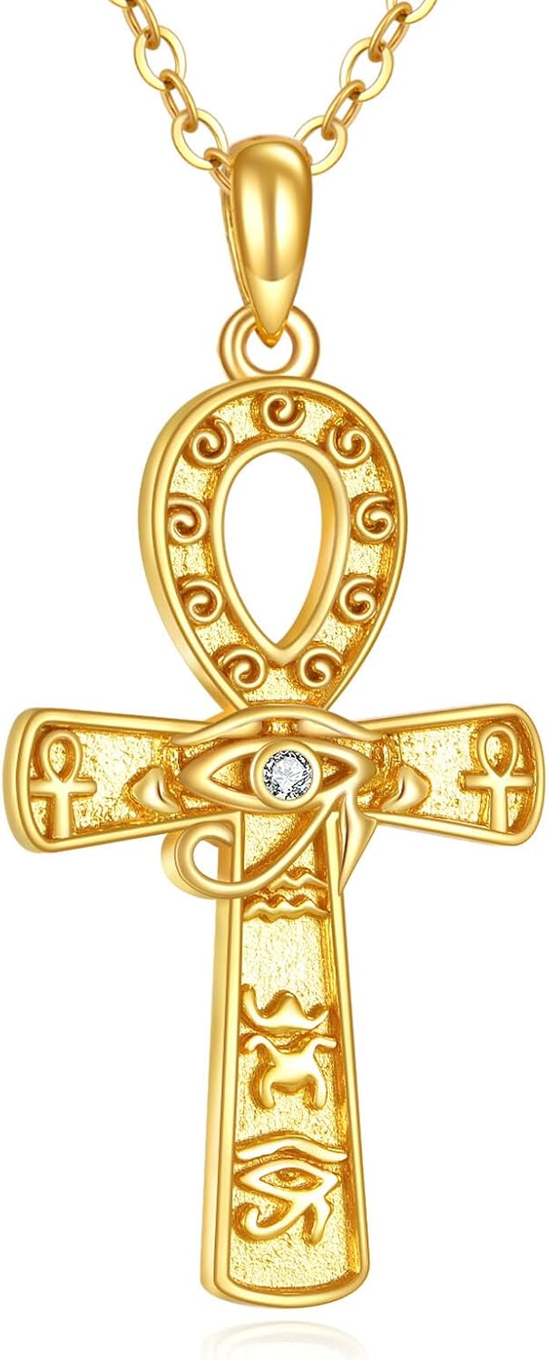 TIGER RIDER Eye of Horus Necklace Sterling Silver Egyptian Ankh Cross Pendant Necklace Protection Jewelry for Women