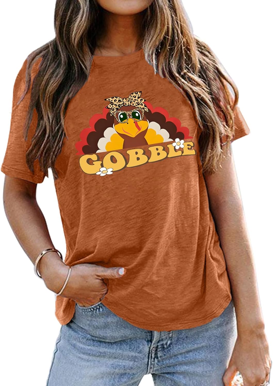Thanksgiving Shirts for Women: Funny Turkey Shirt Gobble Pumpkin Graphic Tees Thankful Blessed T-Shirts Cute Fall Tops